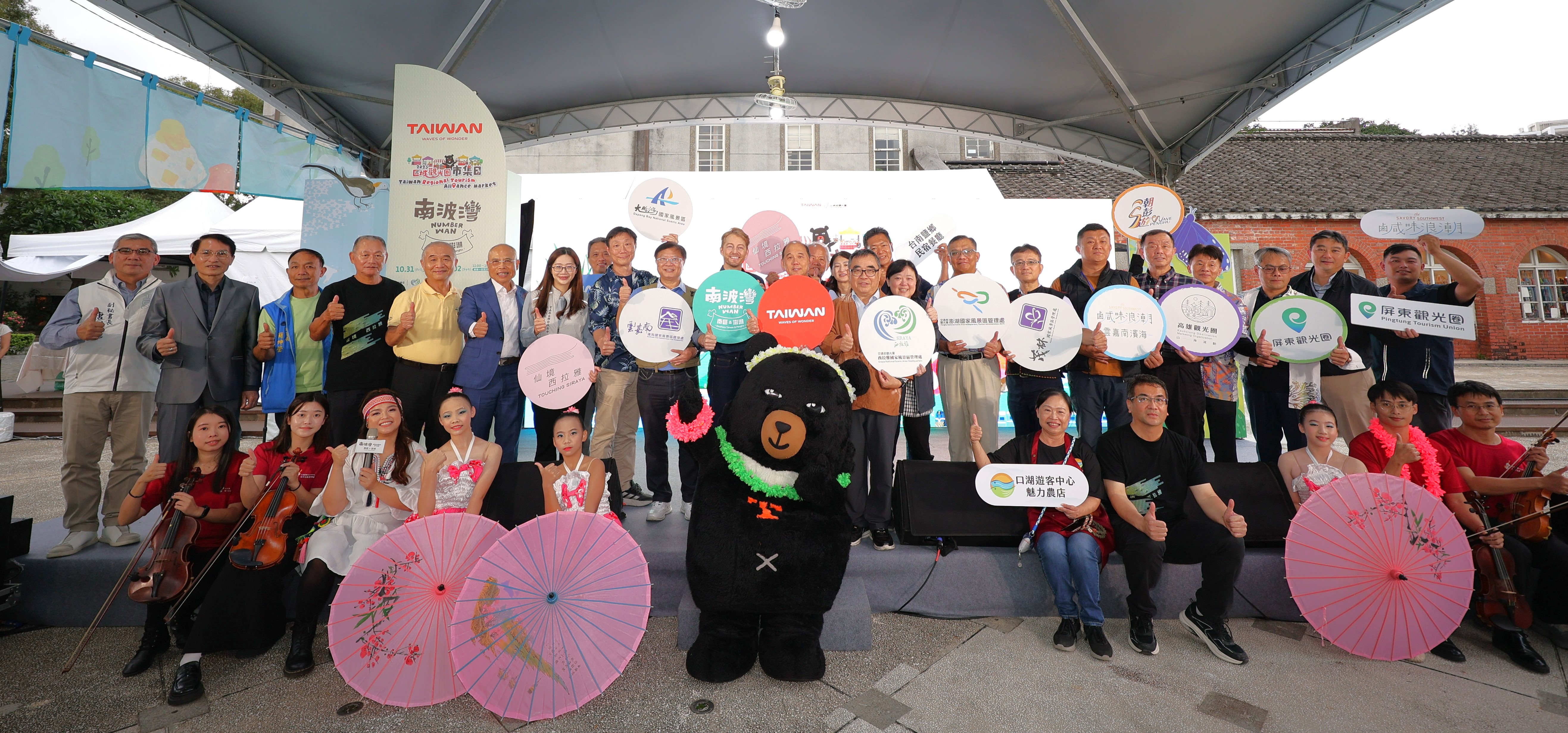 由交通部觀光署指導,西拉雅國家風景區管理處主辦,並偕同雲嘉南濱海、大鵬灣、茂林及澎湖等五大國家風景區管理處共同攜手舉辦的「2025區域觀光圈市集日南區&澎湖場──南波灣 Number WAN」,活動自10月31日至11月2日舉行三天,邀集南臺灣及澎湖共75家最具代表性的業者齊聚一堂,以「山、海、島」為核心意象,呈現南部與離島跨區域整合的全新樣貌,打造國際級旅遊品牌的嶄新篇章。今(31)日在臺北華山劇場由立法委員許智傑、觀光署方正光主任秘書、行政院雲嘉南區聯合服務中心陳怡帆副執行長、西拉雅國家風景區管理處許主龍處長、雲嘉南濱海國家風景區管理處徐振能處長、澎湖國家風景區管理處郭振陵處長、大鵬灣國家風景區管理處施宗泓副處長、茂林國家風景區管理處陳俊綺秘書、阿里山國家風景區管理處黃怡平處長、臺南市西拉雅觀光產業協會林憲堂理事長、雲嘉南濱海產業文化觀光協會戴泳明理事長、屏東縣大鵬灣觀光產業聯盟許裕麟理事長、高雄觀光圈吳文豪副盟主、澎湖觀光圈陳仁和副總召集人、中華民國旅行業品質保障協會張永成理事長、台灣觀巴協會陳柏勳理事長等貴賓,一同為南波灣市集日揭幕。
