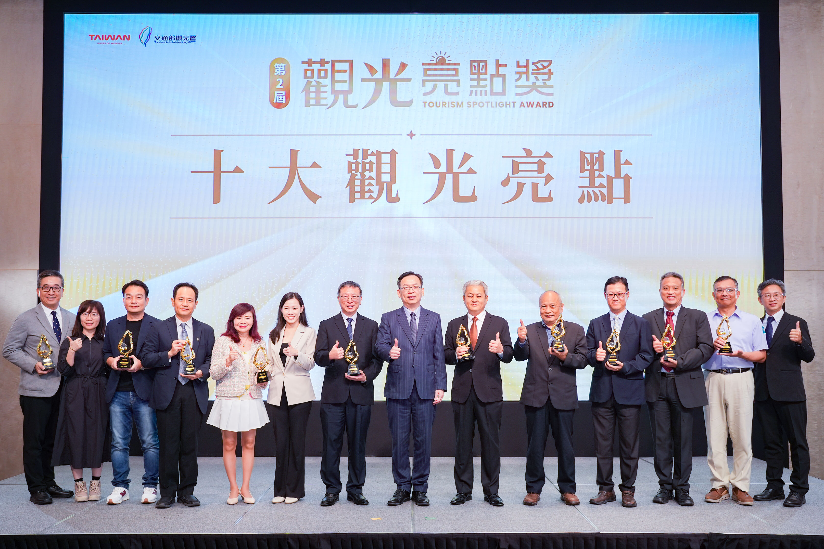 交通部觀光署攜手全臺52個中央部會、地方政府及民間公益法人觀光,公私協力推動第2屆「觀光亮點獎」,歷經全民投票及多元領域專家評選,今(11)日自全臺191處推薦亮點,選出「十大觀光亮點獎」、「最佳國際推薦獎」、「最佳國旅創新獎」及「最佳人氣獎」等32個獎項,並於臺北遠東香格里拉飯店隆重舉行頒獎典禮典禮,同時發表2026-2027年「台灣觀光100亮點」,向國內、外旅客推薦具有永續發展、區域共榮、創新潛力及品牌能見度之觀光亮點,展現臺灣觀光亮點的魅力及價值。